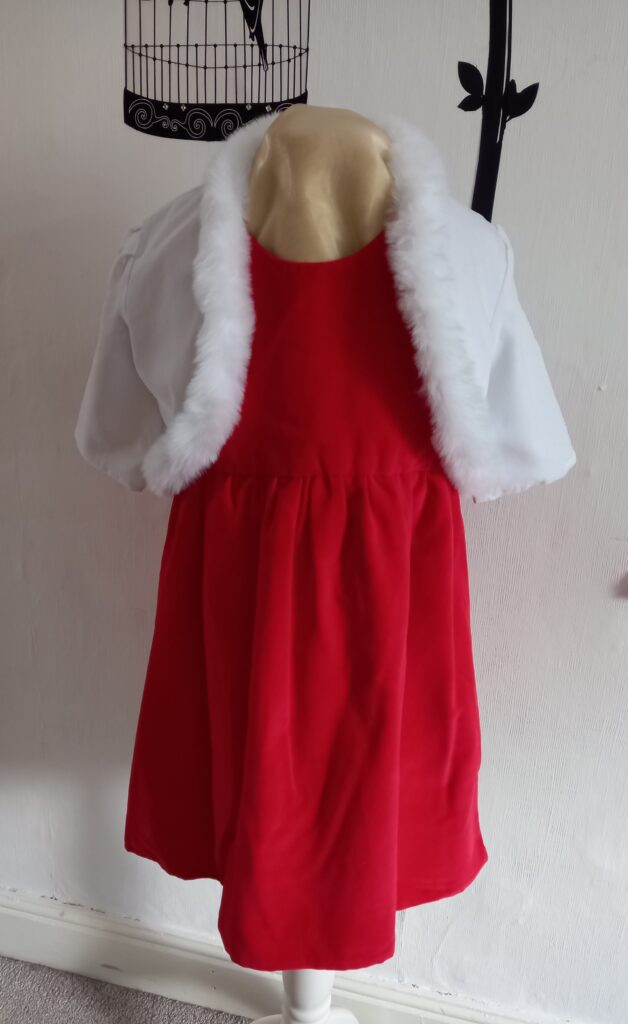 Both dresses had shimmer tulle under the skirts to give volume with just a hint showing underneath, matched with navy blue bolero jackets, for the girls and waistcoats with navy fronts, and London scene on the back of the waistcoats.