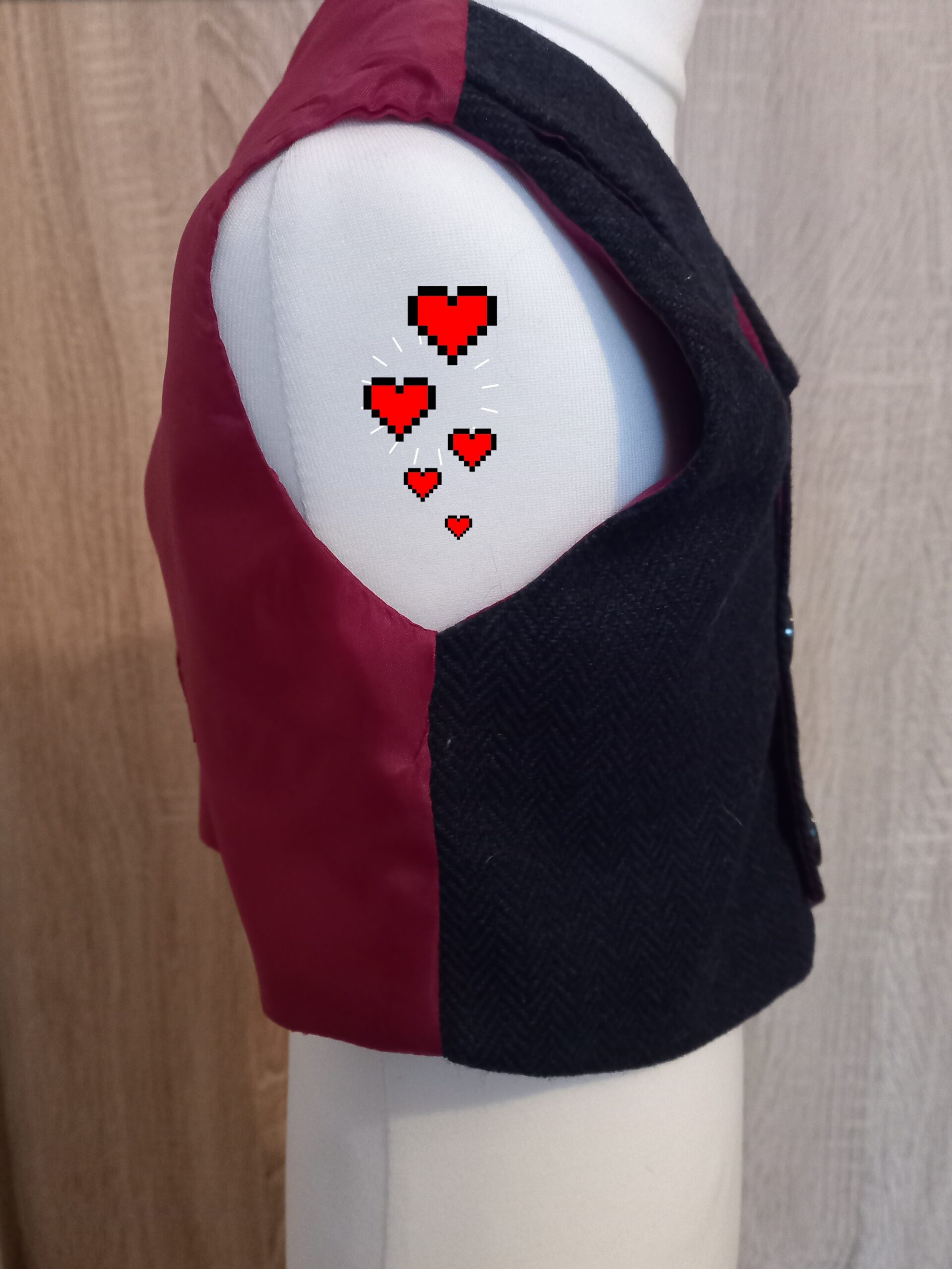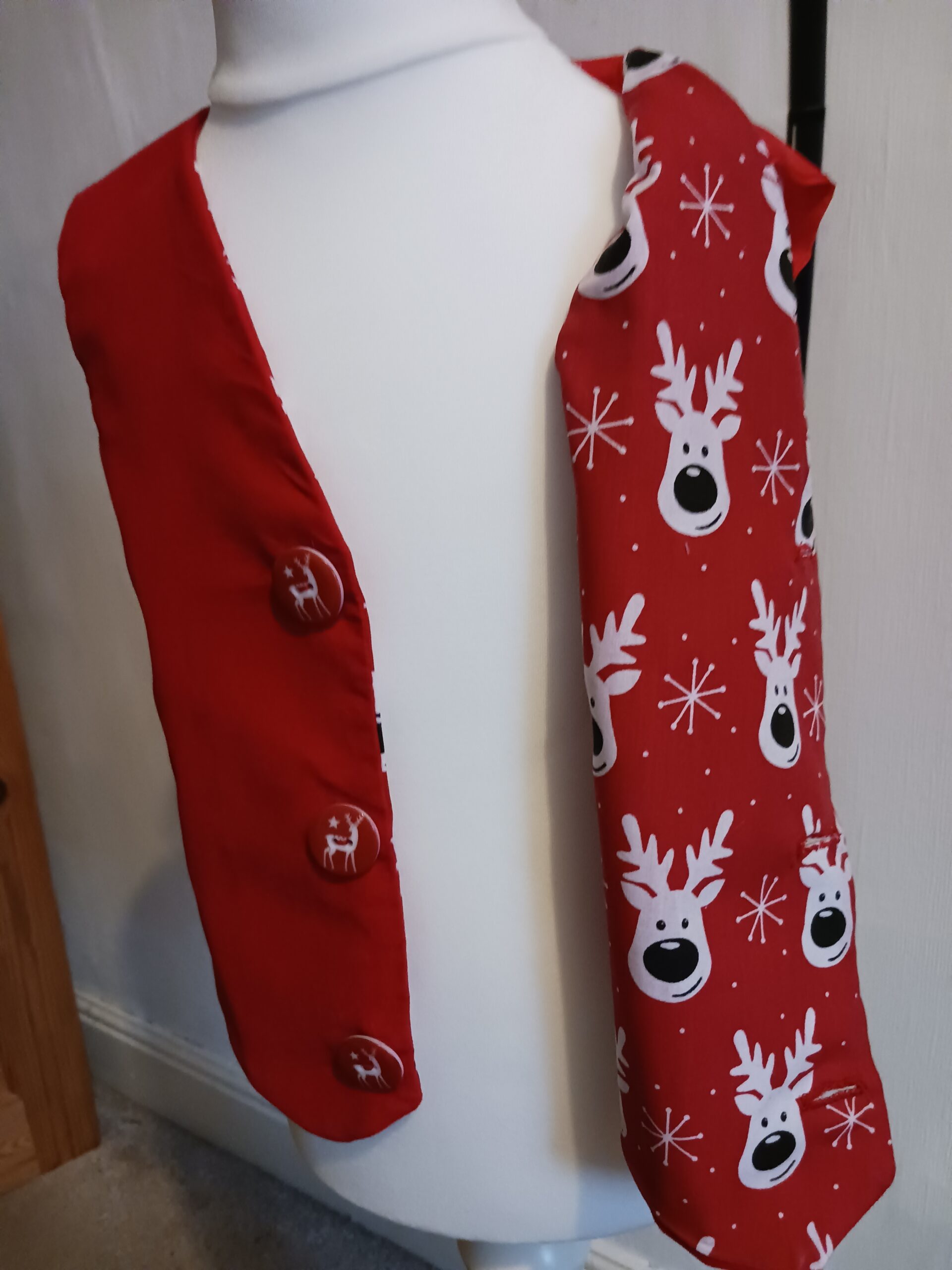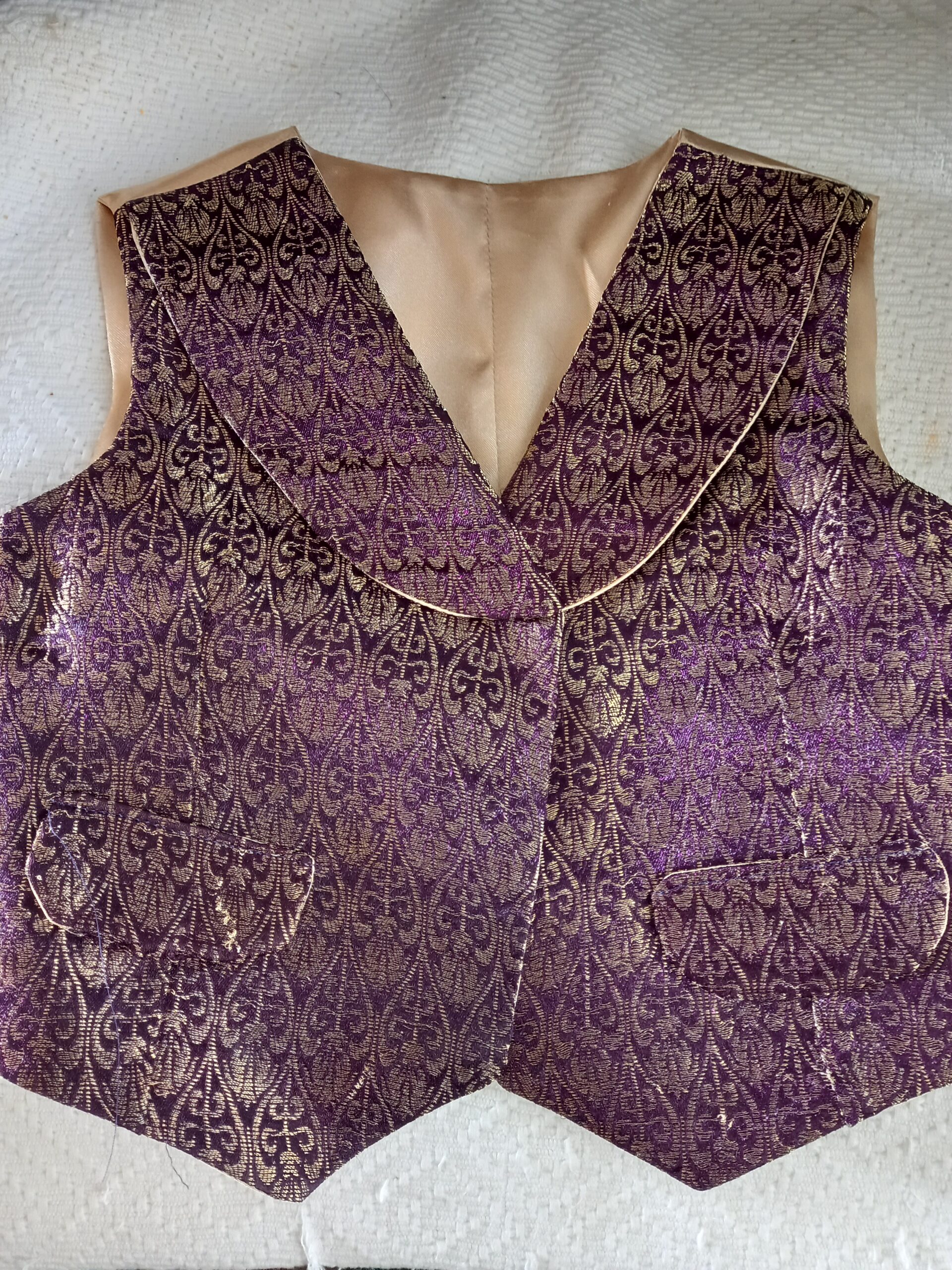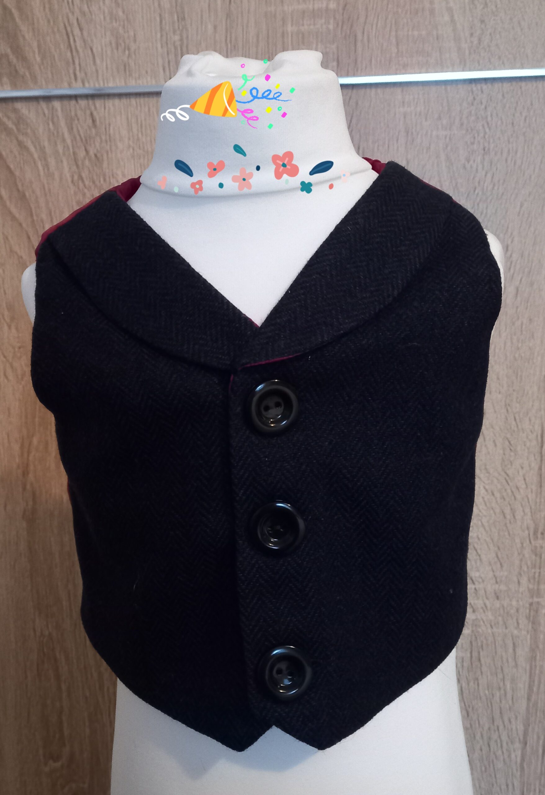 Cotton velvet waistcoat with satin lining and back panels, with button fastenings to front. Waistcoats can be with a half collar or without, have done a variety of these beuatiful little waistcoats for weddings and Christmas/occasions. See the great pictures of these.